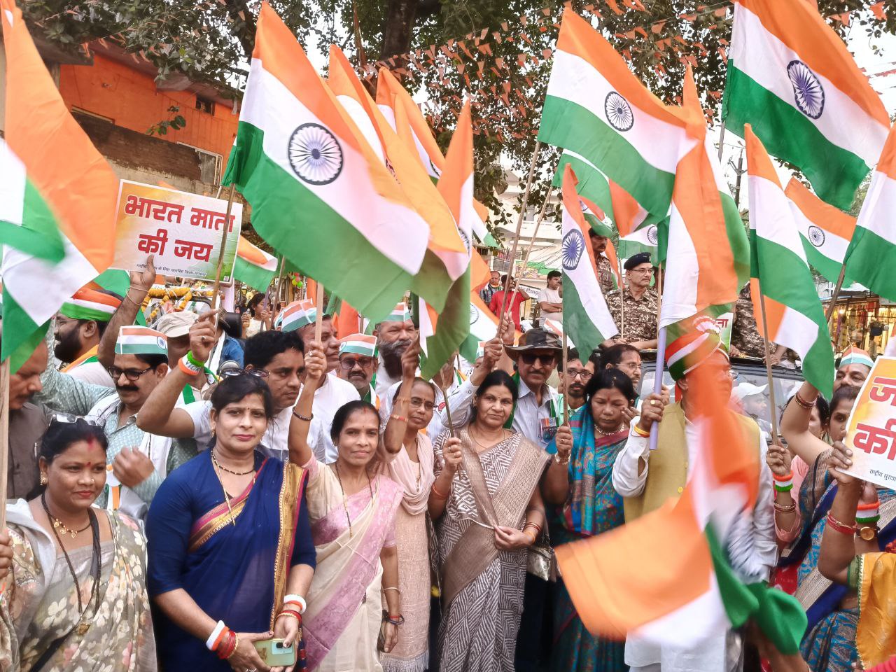 मण्डला। नगर के लालीपुर चौराहा से भव्य आर्कषक तिरंगा यात्रा निकाली गई सेना के सम्मान में निकाली गई तिरंगा यात्रा में हजारों लोगों ने अपनी सहभागिता दर्ज कराते हुए जमकर जय भारत माता जय हिंद के नारे लगाये महिला पुरूष और बच्चे तिंरगा हाथ में लेकर यात्रा में शामिल हुए। यहां पर भारत माता का चलचित्र रथ में सवार दिखा इसी के साथ अन्य झांकियों ने लोंगों का मन मोह लिया। स्काउट गाईड के बच्चों ने अनुशासन तरीके से क्रमबद्ध दिखे वहीं सीआरपीएफ 148 जवान भी तिरंगा यात्रा में शामिल रहे। तिंरगा यात्रा का नगर के अनेक स्थानों में स्वागत किया गया। देश भक्ति के मनमोहक गानों ने तिरंगा यात्रा में उत्साह भर दिया। लालीपुर चौराहा से तिरंगा यात्रा बस स्टैंड चिलमन चौक होते हुए उदय चौक पहुंची जहां पर पुलिस जवानों ने बैंड की धुन पर राष्ट्रगान कराया और हजारों लोगो ने एक साथ राष्ट्रगान किया। बैंड, आतिशबाजी, मनमोहक झांकियों के साथ पैदल मार्च निकली तिरंगा यात्रा का स्थानीय व्यापारी सहित महिलाओं ने पुष्पवर्षा से स्वागत किया। शामिल जनों ने देश भक्ति के लिए अभिव्यक्ति दी यात्रा का पुष्प वर्षा से जगह-जगह स्वागत किया गया। यात्रा में विशाल जनसमूह भारत माता की जय और वंदे मातरम् का उदघोष करते हुए हाथों में तिरंगा लहराते हुए यात्रा को अभूतपूर्व, अविस्मरणीय रूप दिया। यात्रा का समापन स्थानीय उदय चौक में सारे जहां से अच्छा राष्ट्रगान जन गण मन के साथ किया गया। देश की रक्षा के लिए हमेशा तत्पर तीनों सेनाओं में शामिल सैनिकों के पराक्रम का अभिवादन कर आभार व्यक्त करते हुये तिरंगा यात्रा का समापन हुआ। यहां पर जमकर अतिशबाजी भी की गई देश भक्ति का युवाओं में उत्साह दिखाई दिया सर्व समाज द्वारा आयोजित इस कार्यक्रम को वृहद रूप से किया गया। शाम 4:30 पर कार्यक्रम स्थल पर एकत्रीकरण हुआ। वहीं वाहनों की पार्किंग सरस्वती स्कूल में की गई। तिरंगा यात्रा के दौरान नगर के चौराहों में स्थापित प्रतिमाओं रानी अवंती बाई, पं. दीनदयाल एवं डॉ. भीमराव अम्बेडकर के साथ शहीद उदय चंद की प्रतिमा पर फूल वर्षा की गई। सर्व समाज के इस आयोजन का मुख्य उद्देश्य देश की सेना का सम्मान और हौसला अफजाई रहा है। आतंकवाद के विरुद्ध ऑपरेशन सिंदूर में भारतीय सेनाओं ने शौर्य पराक्रम और साहस का अभूतपूर्व प्रदर्शन किया है जिससे यह ऑपरेशन सिंदूर सफल हुआ है। इसके लिए देशभर में सैनिकों के सम्मान के साथ अभिवादन किया जा रहा है। शनिवार को भारत माता की जय और वंदे मातरम के उदघोष करते हुए हाथों में तिरंगा ध्वज लिए नगर की सडक़ों में तिरंगा यात्रा निकाली गई। इसमें सभी वर्ग के लोग बड़ी संख्या में शामिल हुए। राष्ट्रीय सुरक्षा नागरिकों के आह्वान पर इस यात्रा में सर्वसमाज के नागर