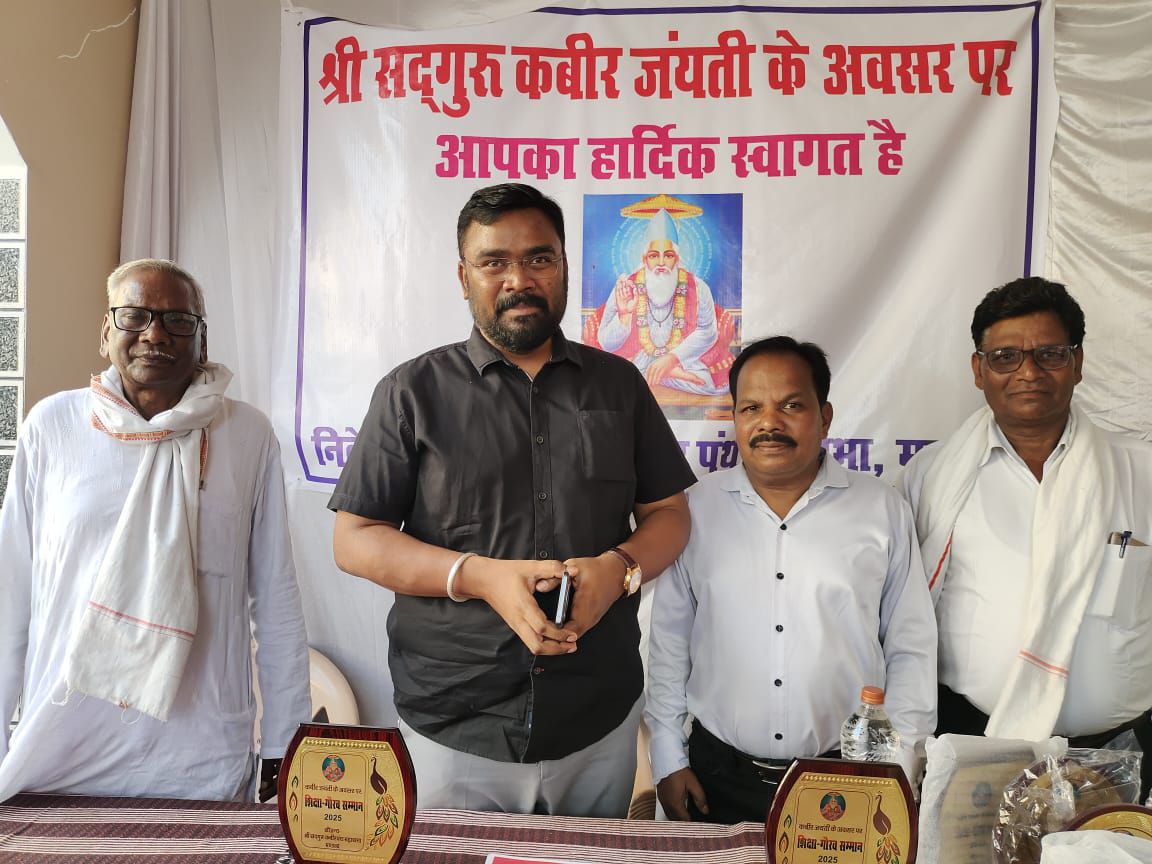 मंडला। श्री सदगुरु कबीर पंथ महासभा के अध्यक्ष गणेश झारिया की अध्यक्षता, जिला पंचायत अध्यक्ष संजय कुशराम के मुख्य आतिथ्य ,सेवा निवृत सहायक आयुक्त एम एल.पनरिया, सेवानिवृत सहायक कोषालय अधिकारी एस डी सोनवानी, अधिवक्ता लखन झारिया एवं महासभा के संरक्षक विनोद सुरेश्वर के विशिष्ट आतिथ्य में निराकार परमब्रह्म के साधक व उपासक दुनिया के महान संत कबीर का प्राकट्य दिवस कबीर चौक में स्थित कबीर मंदिर में बड़े धूमधाम से मनाया गया। इस अवसर पर सैकड़ो कबीरपंथियों ने मंदिर पहुंचकर अपना माथा टेका और उनके आदर्शों को आत्मसात करने का संकल्प लिया। प्रातः 10:30 बजे निशान पूजा के पूजन-अर्चन से कार्यक्रम का शुभारंभ हुआ। दोपहर में महंत श्री मानदास जी के द्वारा चौका आरती की गई ।संध्या काल में शिक्षा-गौरव सम्मान के तहत् इसी वर्ष कक्षा दसवीं एवं बारहवीं में 80% से अधिक अंक अर्जित करने वाले कुल 20 विद्यार्थियों को स्मृति चिन्ह और सम्मान पत्र दिया गया। 90% से अधिक अंक अर्जित करने वाले विद्यार्थियों को विशेष सम्मान से नवाजा गया।