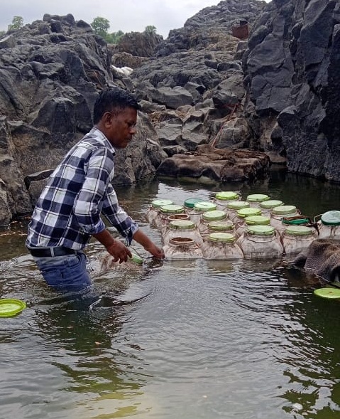 मण्डला। कलेक्टर के निर्देशन मे जिला आबकारी अधिकारी रामजी पांडेय के मार्गदर्शन में जिले में मदिरा के अवैध संग्रहण परिवहन एवं विक्रय के विरुद्ध की गई कार्यवाही में वृत मण्डला मे ग्राम पंचायत देवदरा में सहस्त्रधारा के निकट नर्मदा नदी के किनारे मदिरा निर्माण करने वाले अड्डो पर दबिश कार्यवाही की गई। जिसमें मदिरा का निर्माण करने वाले विभिन्न अड्डो से कच्ची मदिरा 160 लीटर एव विभिन्न अड्डो से कुल 190 डिब्बो में भरा लाहन पाया। लहान को नदी के अंदर प्लास्टिक के डब्बो में छुपा कर रखा गया था जिसे पानी से निकालकर विधिवत नष्ट किया गया जिसकी कुल मात्रा लगभग 1900 किलोग्राम है। जप्त मदिरा एवं लहान की कुल अनुमानित कीमत 2,14,000 रुपये है। आबकारी बल को देख आरोपी भाग खड़े हुए अज्ञात आरोपियो के विरुद्ध मध्यप्रदेश आबकारी अधिनियम के अंतर्गत प्रकरण पंजीबद्ध किया गया मदिरा के अवैध निर्माण में लिप्त आरोपियों की तलाश जारी है। उक्त कार्यवाही के दौरान आबकारी उपनिरिक्षक गिरिजा धुर्वे, सर्वेश नागवंशी, शैली सैयाम, दुर्जन कुलेश आरक्षक विजय कमलेश,रघुनाथ उइके,महेश पटेल, शंकुतला सैयाम, प्रिया नायडू ,कन्हैया उइके, रविन्द्र टेकाम उपस्थित रहे।