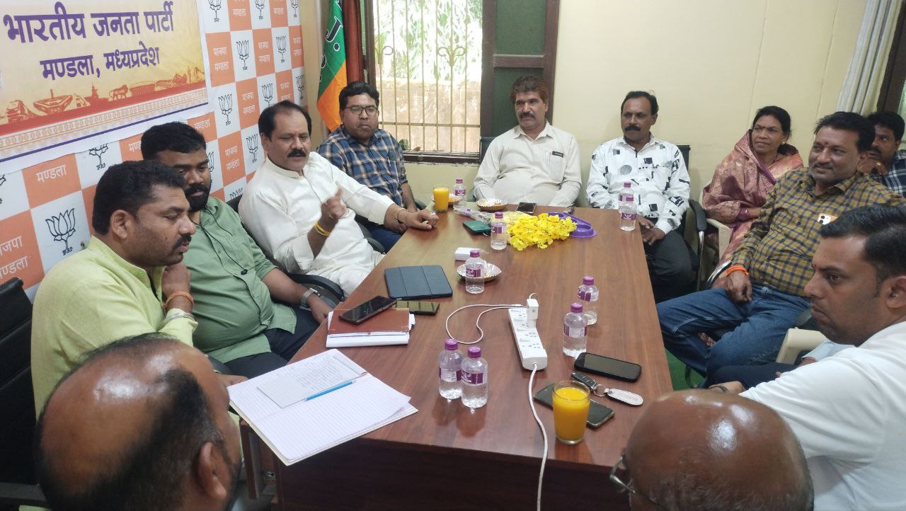 मण्डला। गुरूवार को भाजपा जिला कार्यालय में बिछिया नगर पंचायत के वार्ड क्रमांक 13 में होने जा रहे उप चुनाव को लेकर भाजपा जिला अध्यक्ष प्रफुल्ल मिश्रा, जिला पंचायत अध्यक्ष संजय कुशराम,सांसद प्रतिनिधि जयदत्त झा, जिला महामंत्री नीरज मरकाम की उपस्थिति में बैठक आयोजित की गई। बैठक में विभिन्न विषयों पर चर्चा की गई। कार्यकर्ताओं को दायित्व सौंपा गया साथ पार्षद के उप चुनाव को लेकर रणनीति तैयार की गई। बैठक के दौरान जिला महामंत्री उमेश ठाकुर, जिला उपाध्यक्ष अशोक नानकानी, मंडल अध्यक्ष बिछिया नीरज भट्ट, बिछिया नगर पंचायत अध्यक्ष रजनी मरावी, बिछिया वार्ड क्रमांक 10 पार्षद शशिकांत श्रीवास्तव, बिछिया वार्ड क्रमांक 3 पार्षद अजय गोस्वामी, भाजपा कार्यकर्ता डॉ विजय आनंद मरावी, सांसद प्रतिनिधि चंद्रकांत झारिया, बिछिया मंडल महामंत्री नरेश सार्वे सहित अन्य कार्यकर्ता मौजूद रहे।