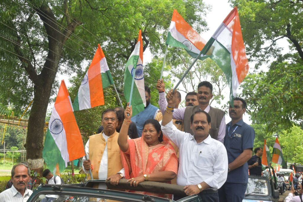 पर भ्रमण किया। बाईक सवारों ने भारत माता की जय के नारों से ’हर घर तिरंगा’ अभियान के लिएजागरूकता प्रसारित की। यह रैली नेहरू स्मारक-बैगा बैगी चौक-लालीपुर-चिलमन चौक