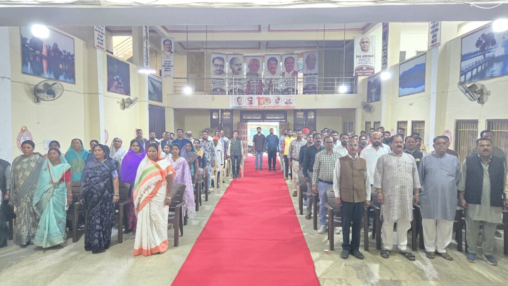 मंडला। राष्ट्रगीत वंदे मातरम् के 150 वर्ष पूर्ण होने के उपलक्ष्य में प्रदेश कार्यालय के निर्देशन में भारतीय जनता पार्टी जिला कार्यालय में सामूहिक वंदे मातरम् गायन कार्यक्रम का आयोजन किया गया। कार्यक्रम में प्रदेश की कैबिनेट मंत्री श्रीमती संपतिया उईके की गरिमामयी उपस्थिति रही। वहीं भाजपा जिला अध्यक्ष श्री प्रफुल्ल मिश्रा के नेतृत्व में कार्यक्रम आयोजित किया गया। कार्यक्रम की शुरुआत कार्यक्रम प्रभारी वरिष्ठ भाजपा नेता पारस असरानी ने राष्ट्रगीत वंदे मातरम् गाकर कार्यक्रम का शुभारंभ किया। उनके गायन से जिला कार्यालय वंदे मातरम् के स्वरों से गूंज उठा। वही मंडल उपाध्यक्ष बैसाखू नंदा द्वारा भारत माता पर आधारित गीत के सुमधुर गायन से पूरे माहौल को देशभक्ति की भावना से ओतप्रोत कर दिया। कार्यक्रम में सभी ने एक स्वर में “वंदे मातरम्” का जयघोष किया और राष्ट्र एकता व गौरव की भावना के साथ संकल्प लिया।